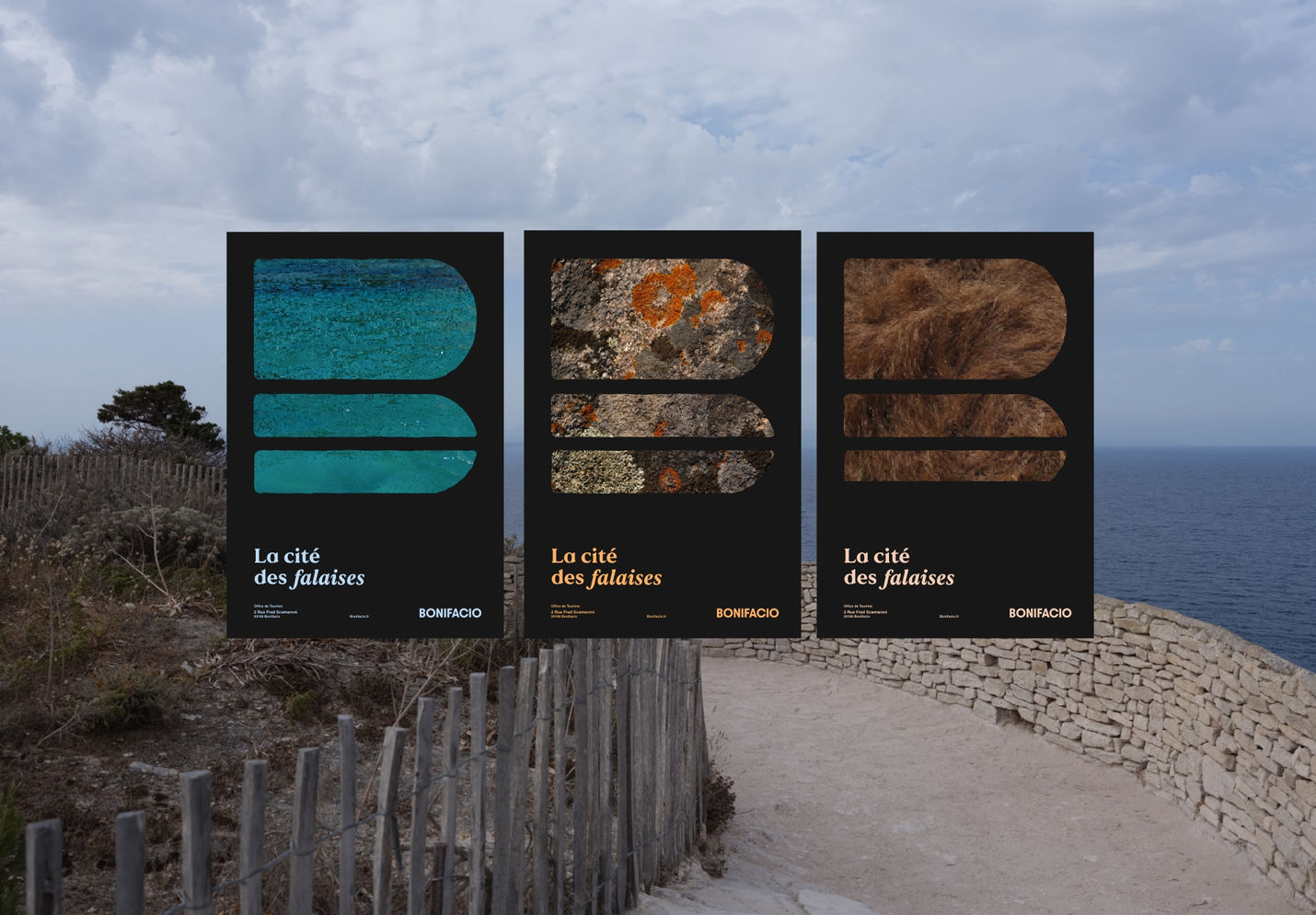 Pour réinventer et construire les villes de demain, il est courant de souligner l’importance vitale du paysage culturel et de la créativité. Les villes européennes se sont lancées dans une compétition pour attirer sur leur territoire des entreprises, des travailleurs, des étudiants et des touristes. La culture a un impact croissant sur la politique d'attraction et les villes européennes ont adopté des positions marketing fédératrices : Be Berlin, Only Lyon, IAMsterdam, People Make Glasgow… Bonifacio est située au sud de la France, en Corse. La ville est réputée en Europe pour ses paysages époustouflants. L'enjeu de la reconnaissance internationale est d'aider Bonifacio à dépasser son statut de « carte postale », à augmenter la durée moyenne de séjour des touristes et à les attirer hors saison. En mettant l'accent sur le patrimoine médiéval, les activités culturelles et sportives, nous construisons une communication basée sur le mystère, la découverte et l'émerveillement. La direction photographique apporte de l'authenticité : couleurs désaturées, cadrages centrés sur les textures, lumière douce et naturelle… L'identité de la marque s'attache à révéler la forte personnalité de la Corse du Sud, à l'ambiance moderne mais vintage. Nous nous sommes inspirés des affiches vintage d'Air France (compagnie aérienne française), typiques du graphisme de la côte sud française des années 1970. La police de logo Avantt de Displaay donne une forte personnalité à la communication de la marque, même lorsque la police est utilisée seule. La police de caractères est modifiée (avec des coins arrondis et des lignes tremblantes) en référence aux textures et aux murs érodés caractéristiques de Bonifacio. Combinée à des couleurs ludiques et à une diversité (+100) d'illustrations naïves, la police de titre Bobby de F37 Foundry crée une identité de marque chaleureuse et invitante. L'utilisation de l'italique donne une dynamique contemporaine et permet de mettre en avant des mots importants et des verbes d'action pour tenter de se concentrer sur la diversité des activités que vous pouvez vivre dans la ville et ses environs.